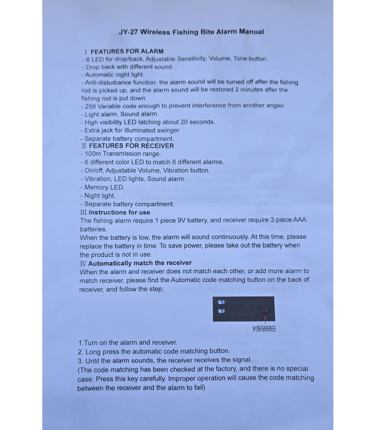 Set avertizori FL JY-27BB cu stație wireless, LED-uri direcționale, sunet drop-back, vibrație, lumină de noapte și rază de până la 100 m. Stația recepționează semnalul de la avertizori pe o distanță de până la 100 m și notifică prin sunet, vibrație și LED-uri colorate distincte. Funcția anti-deranjare oprește automat sunetul atunci când lanseta este ridicată și îl reactivează ulterior, fiind extrem de utilă în timpul drill-ului.
