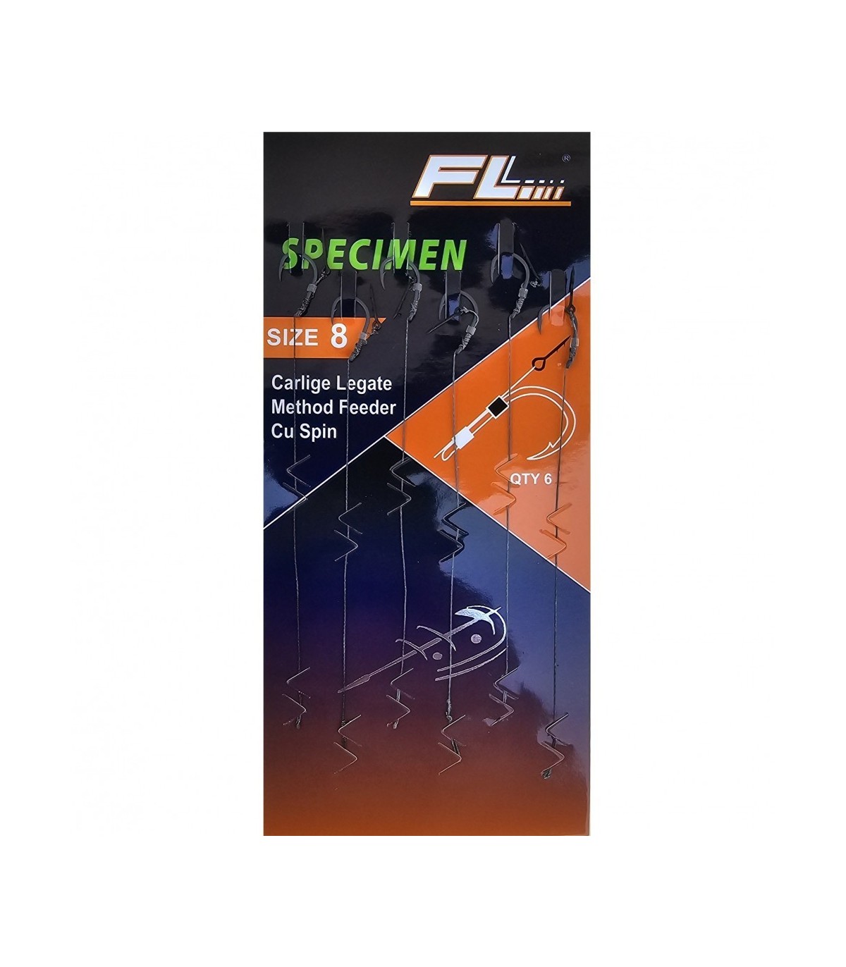 Carligele FL Specimen Feeder , legate cu forfac de 10 cm și echipate cu spin de momeală legat de 7 mm, sunt ideale pentru pescuitul modern la method feeder. Monturile sunt gata de utilizare și oferă o prezentare corectă a momelii, asigurând o înțepare rapidă și sigură.
