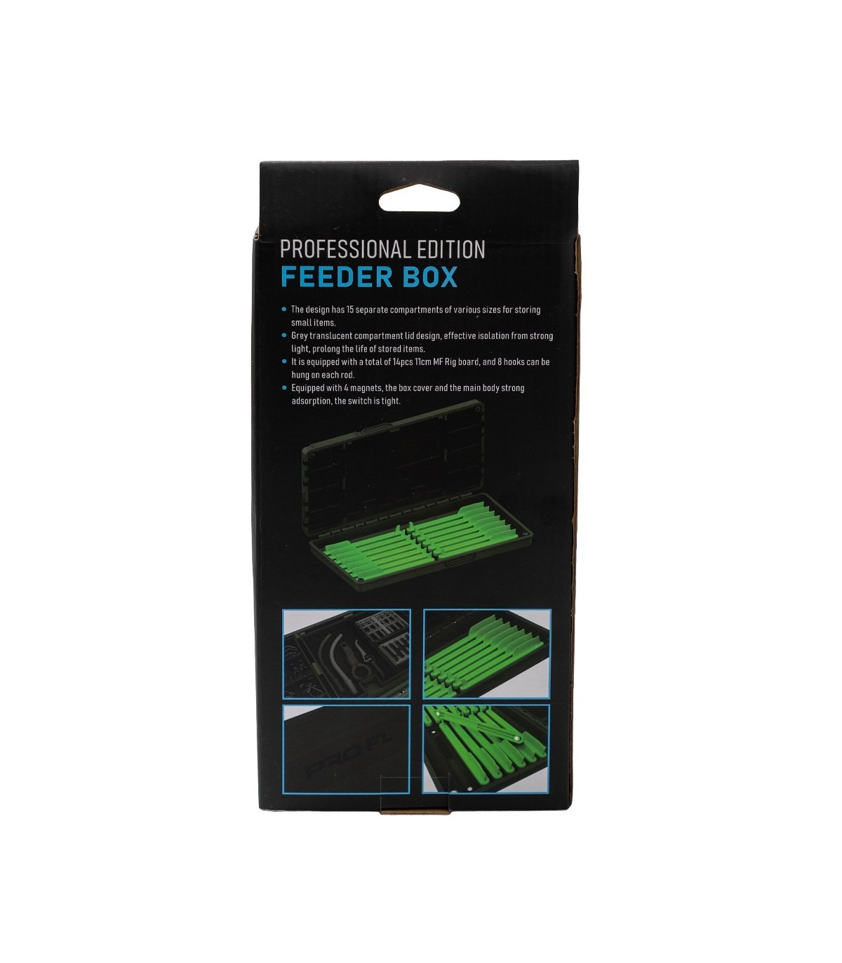 Cutie concepută pentru depozitarea monturilor Method Feeder. Echipată cu 4 rig board-uri de 11 cm, cu capacitate de până la 8 cârlige fiecare. Dispune de închidere cu magneți și benzi de etanșare pentru protecție...
