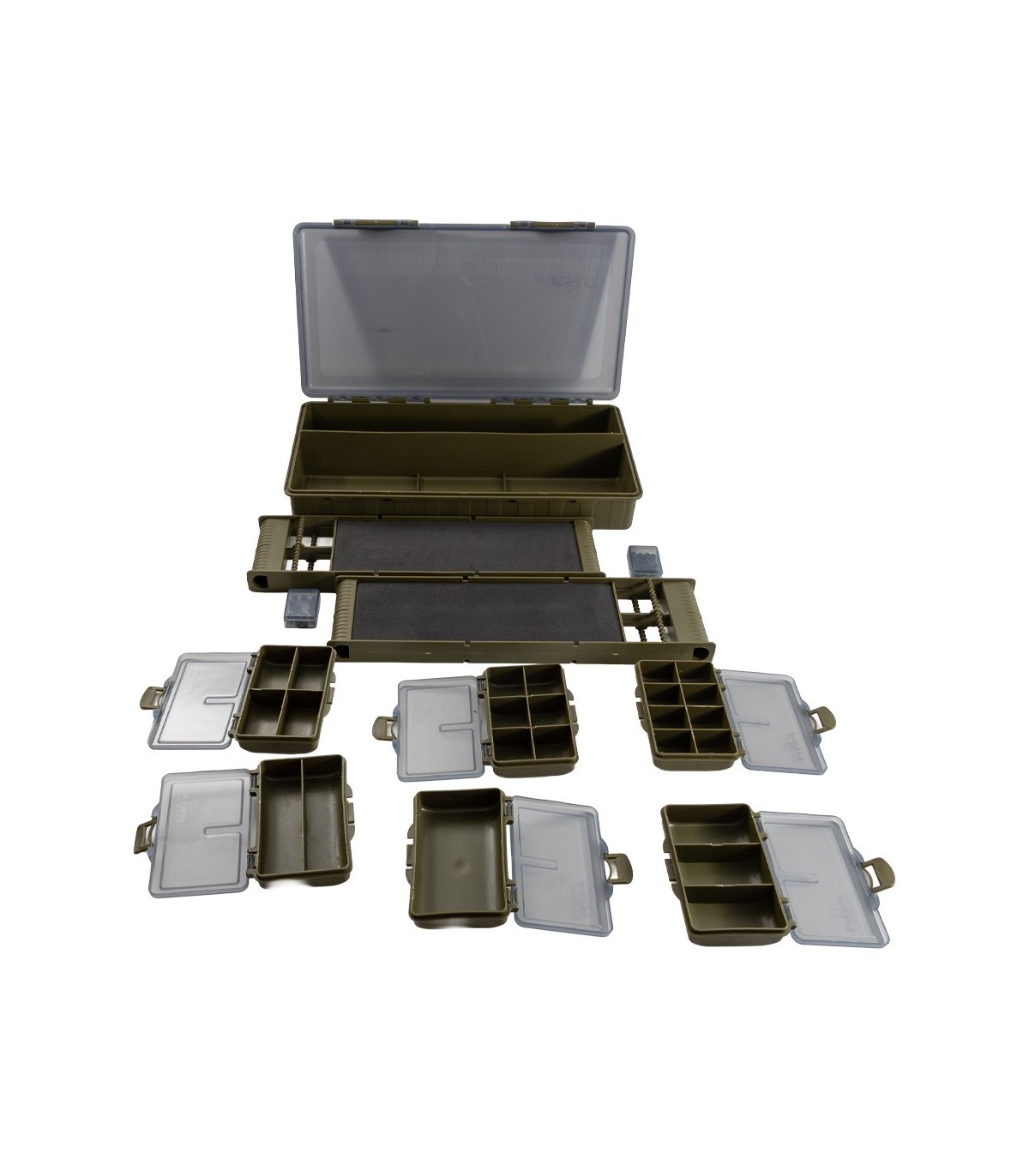 Cutie organizatoare pentru pescuit, ideală pentru păstrarea monturilor și accesoriilor într-un mod ordonat și sigur. Designul modular include zonă cu burete pentru monturi, compartimente spațioase și cutii detașabile pentru accesorii mici, oferind flexibilitate maximă în organizare.