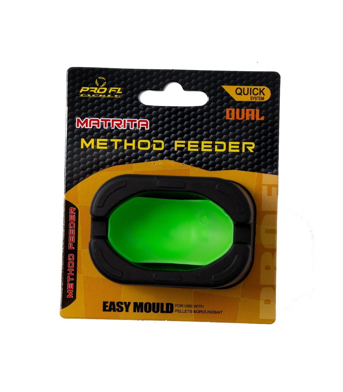 Matrita pentru momitoarele de feeder prevazuta cu dispozitiv de scoatere a momitorului incarcat. Confectionata din material plastic de calitate, cu durata mare de utilizare. Se poate folosi pe momitoarele de feeder ce au forma matritei, cu talpa avand lungimea de maximum 52mm si latimea de maximum 32mm. Adancime 22mm.