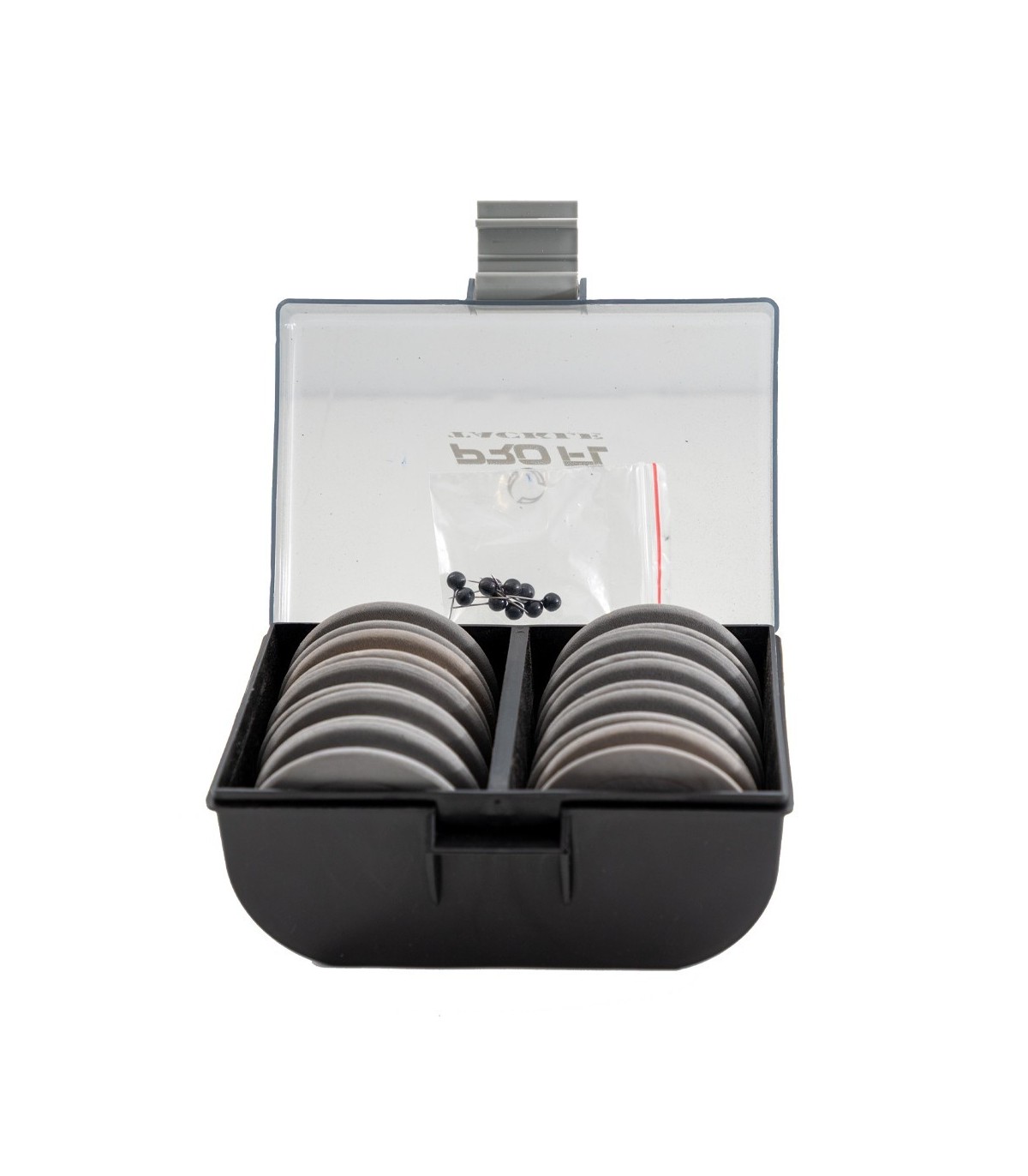 Cutie profesională pentru monturi de crap, echipată cu role EVA pentru depozitarea și organizarea firelor, liderilor și monturilor. Include role colorate și accesorii de fixare.