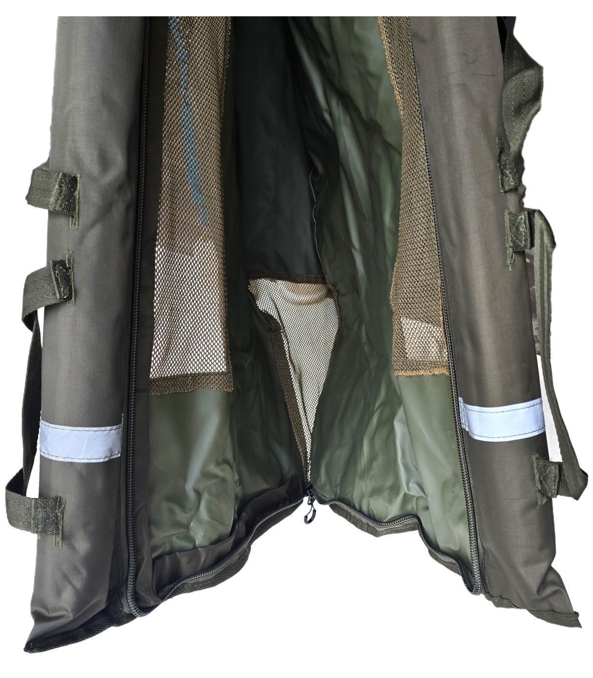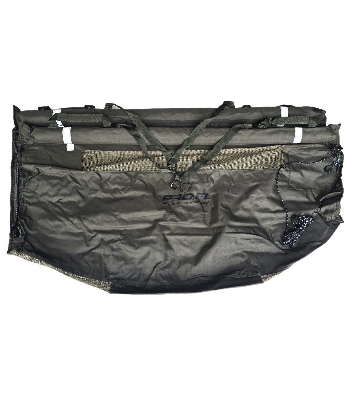 Sling-ul este prevazut cu bare rigide plutitoare ce tin sacul de pastrare in conditii optime pentru pastrarea pestilor si are atasate patru benzi reflectorizante pentru a fi reperat cu usurinta pe timpul noptii.